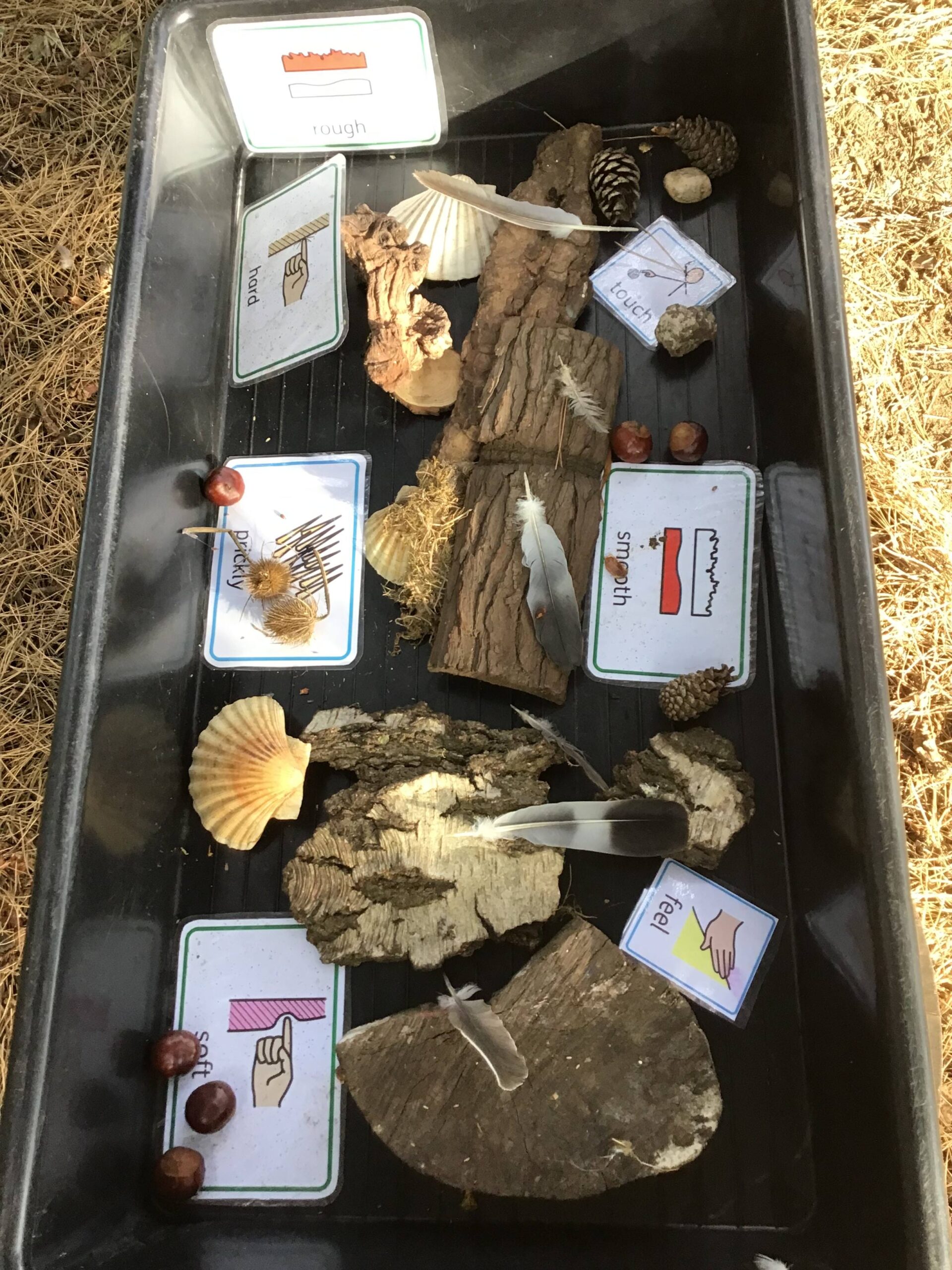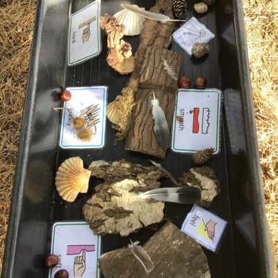 Aside to treating our senses we have been building towers, racing conkers, making alternating patterns, discovering different forest textures as well as enjoying the hammocks, swings and digging pit.