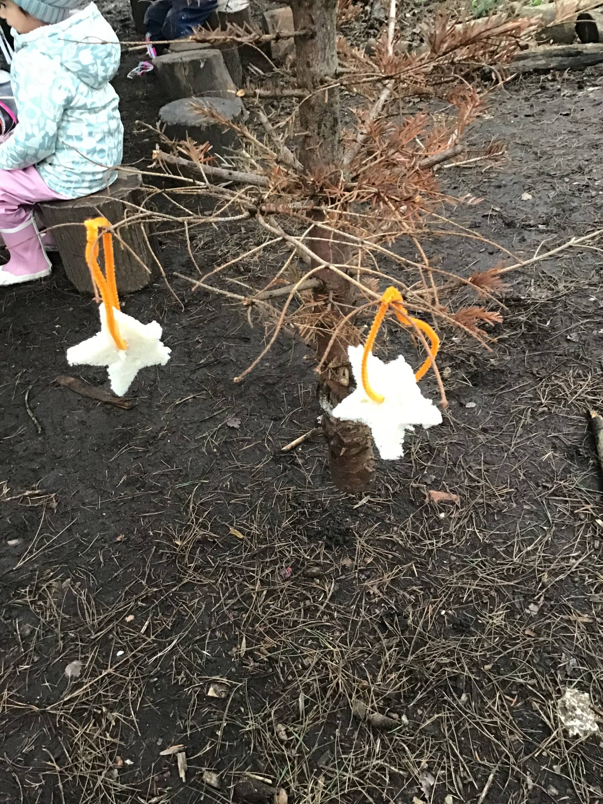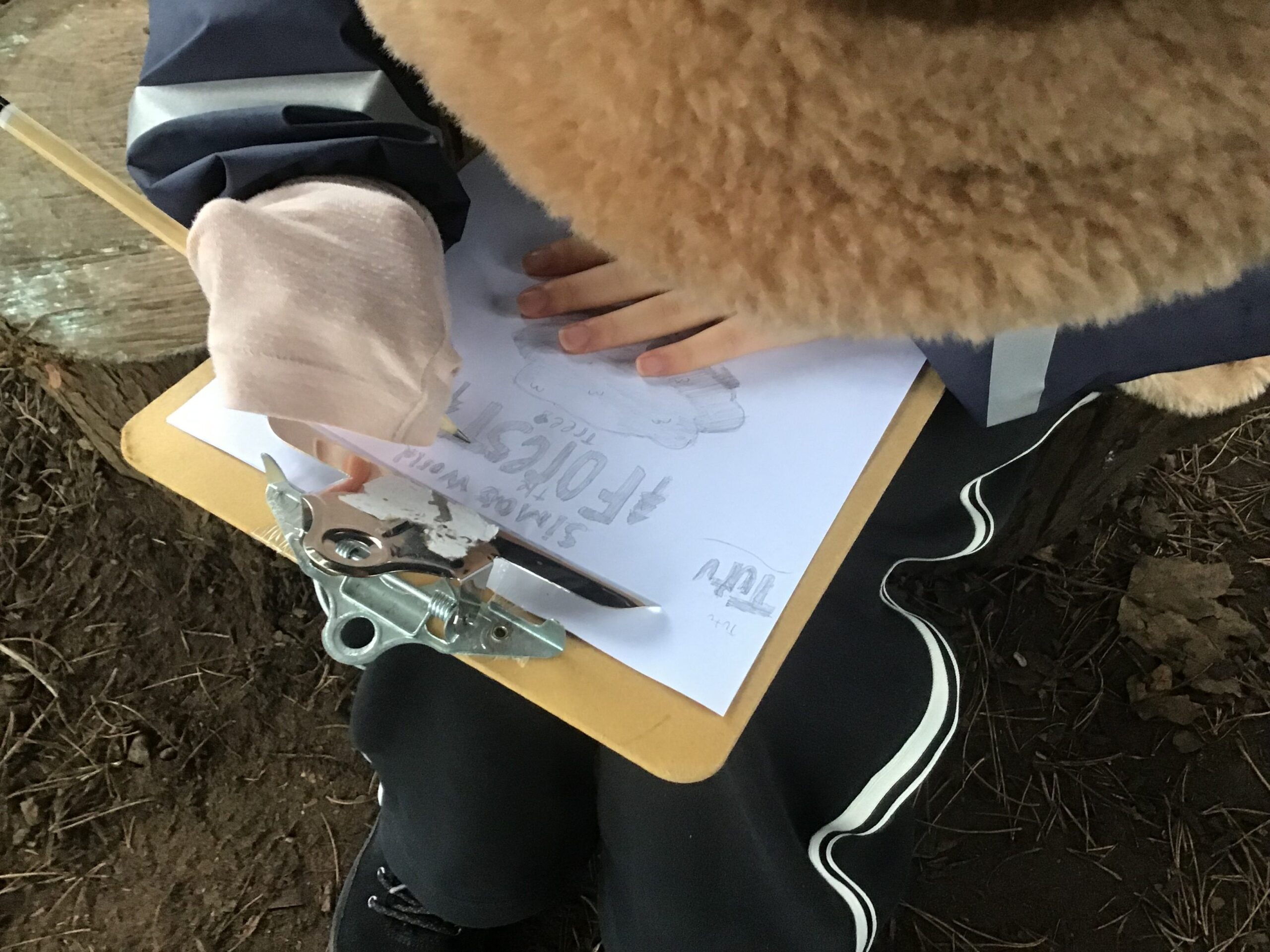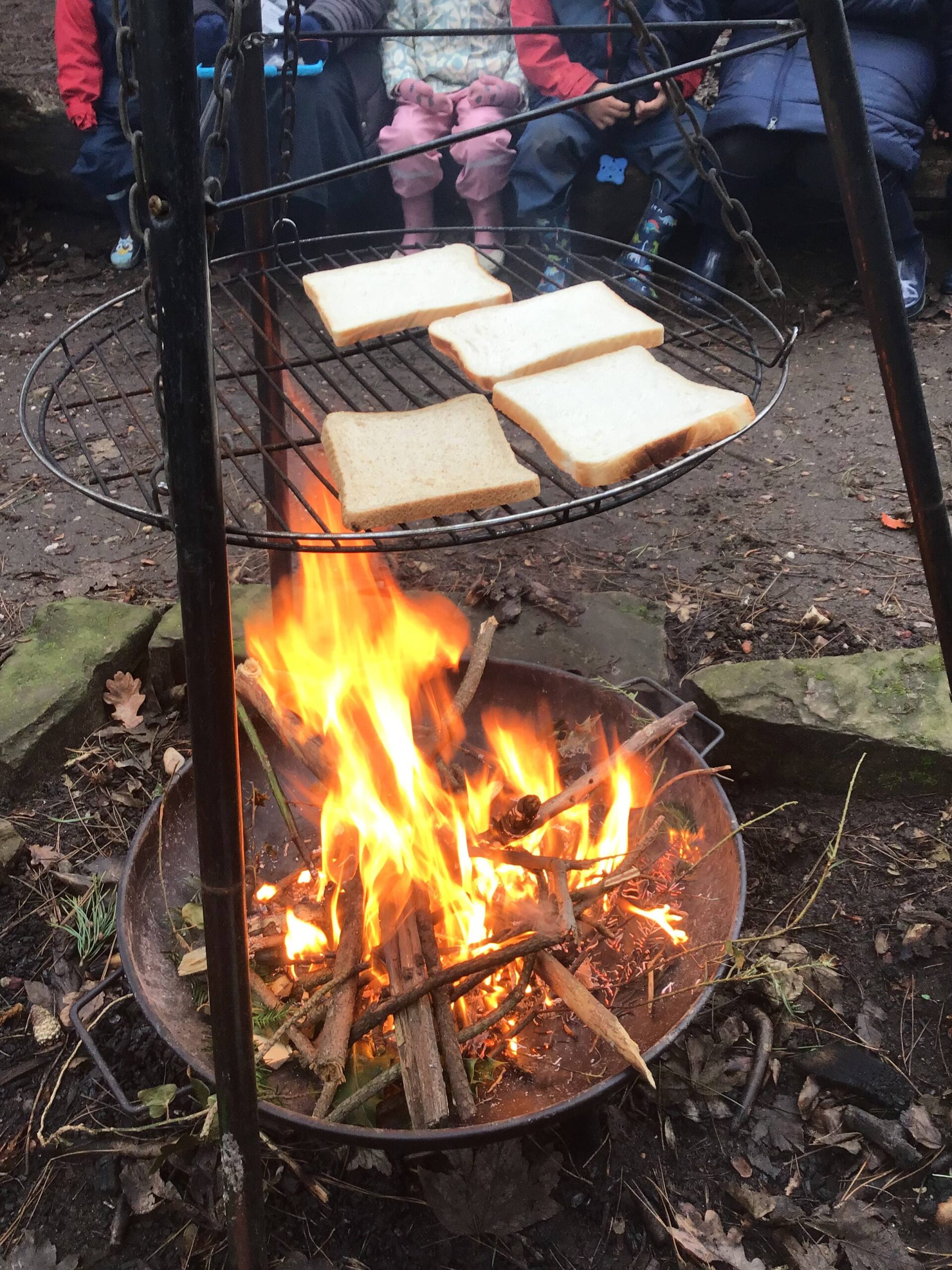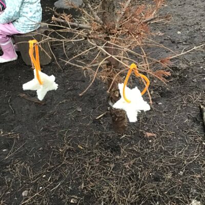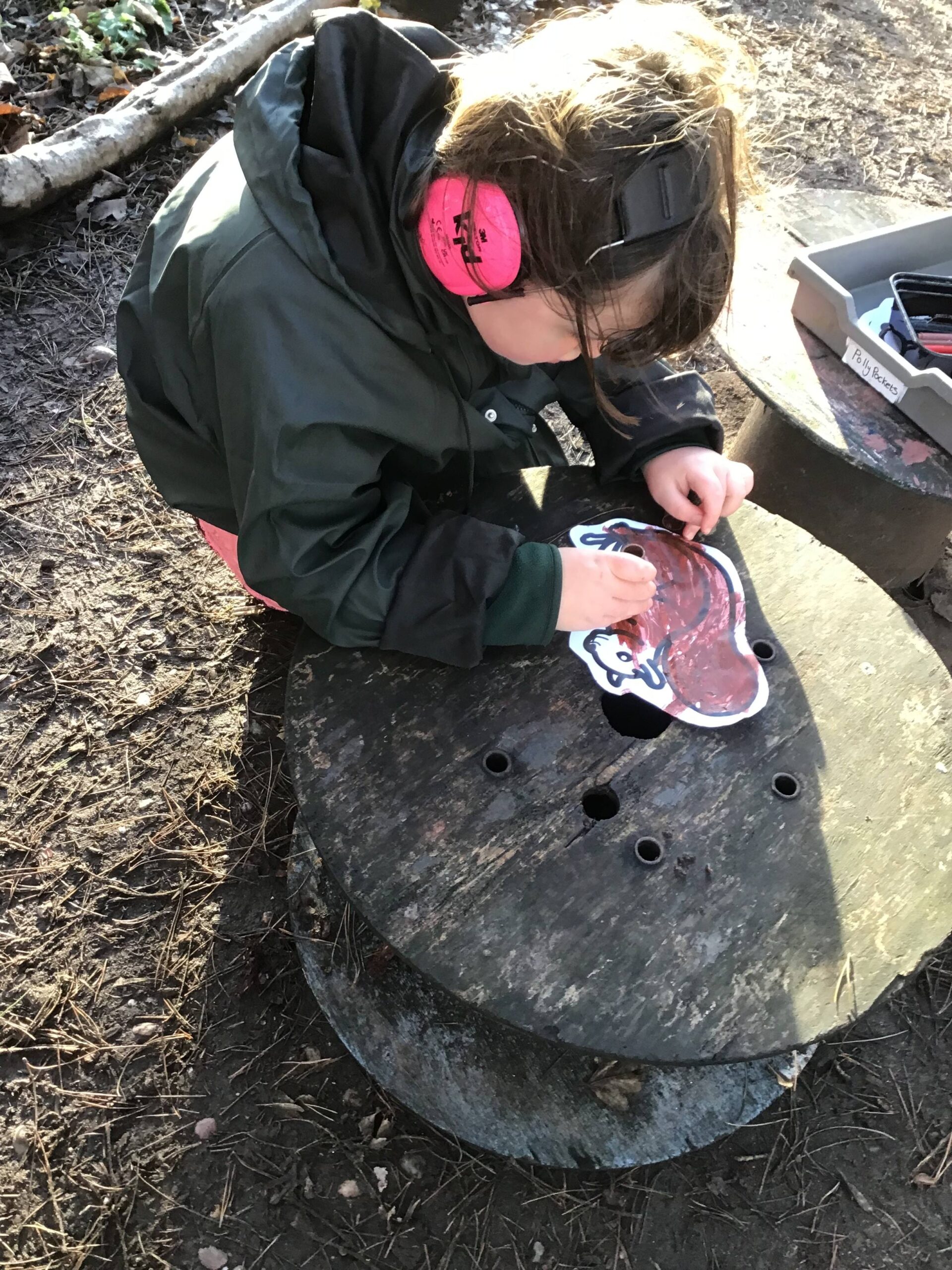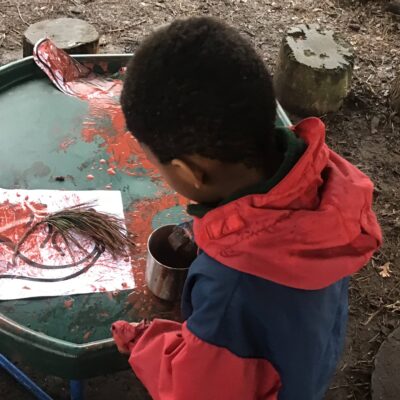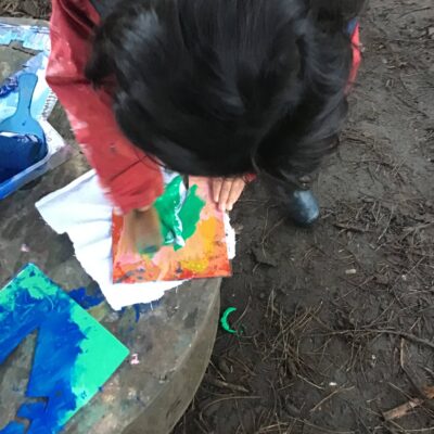 This week we also woke the Forest up by having our very own Pines ‘Wassail’ classes banged pots and pans to wake the trees and gave traditional offerings of bread. Early Years didn’t want the trees to have all the bread so toasted some on the campfire and enjoyed some hot buttered toast. Classes also used coloured paints to print new bunting to decorate the trees once they are awake. 2D made good use of the winter sun by producing brilliant solar pictures on cyantype paper while 2S enjoyed mark making in the mud while 2A decorated their own Oak tree.