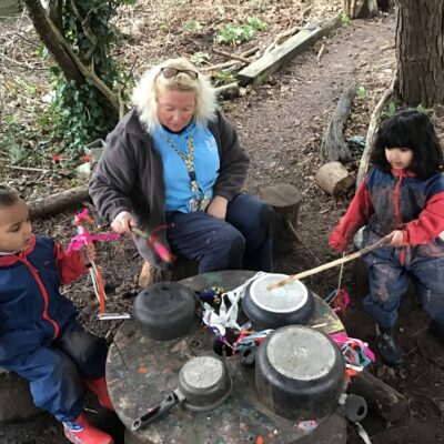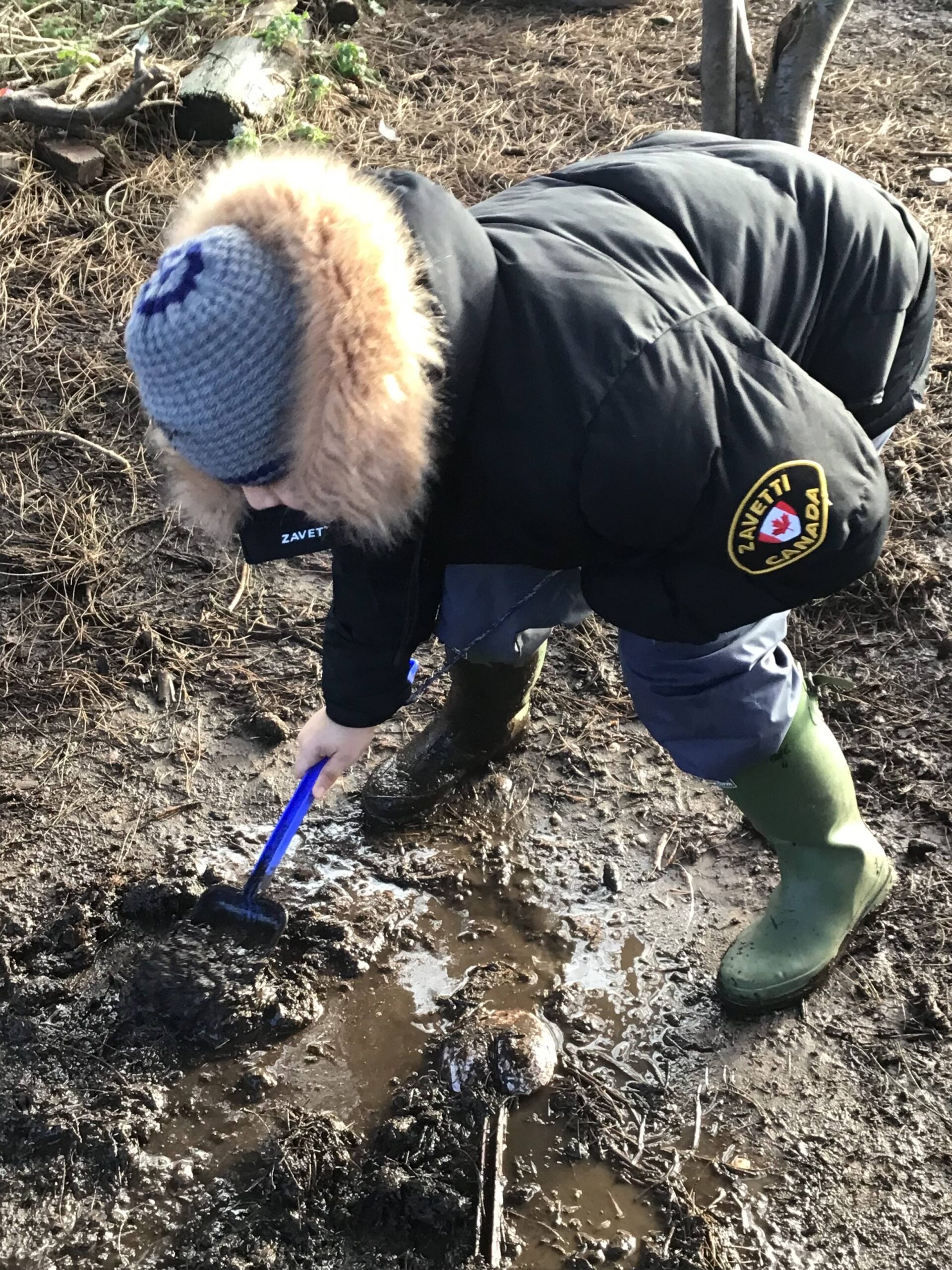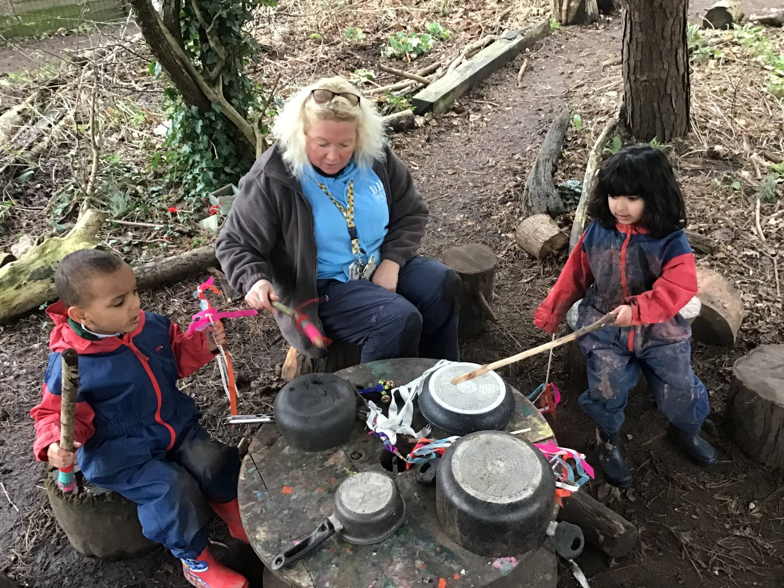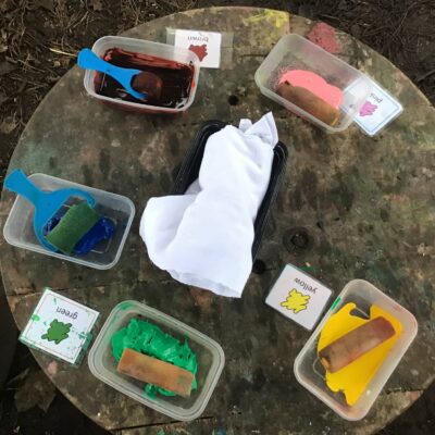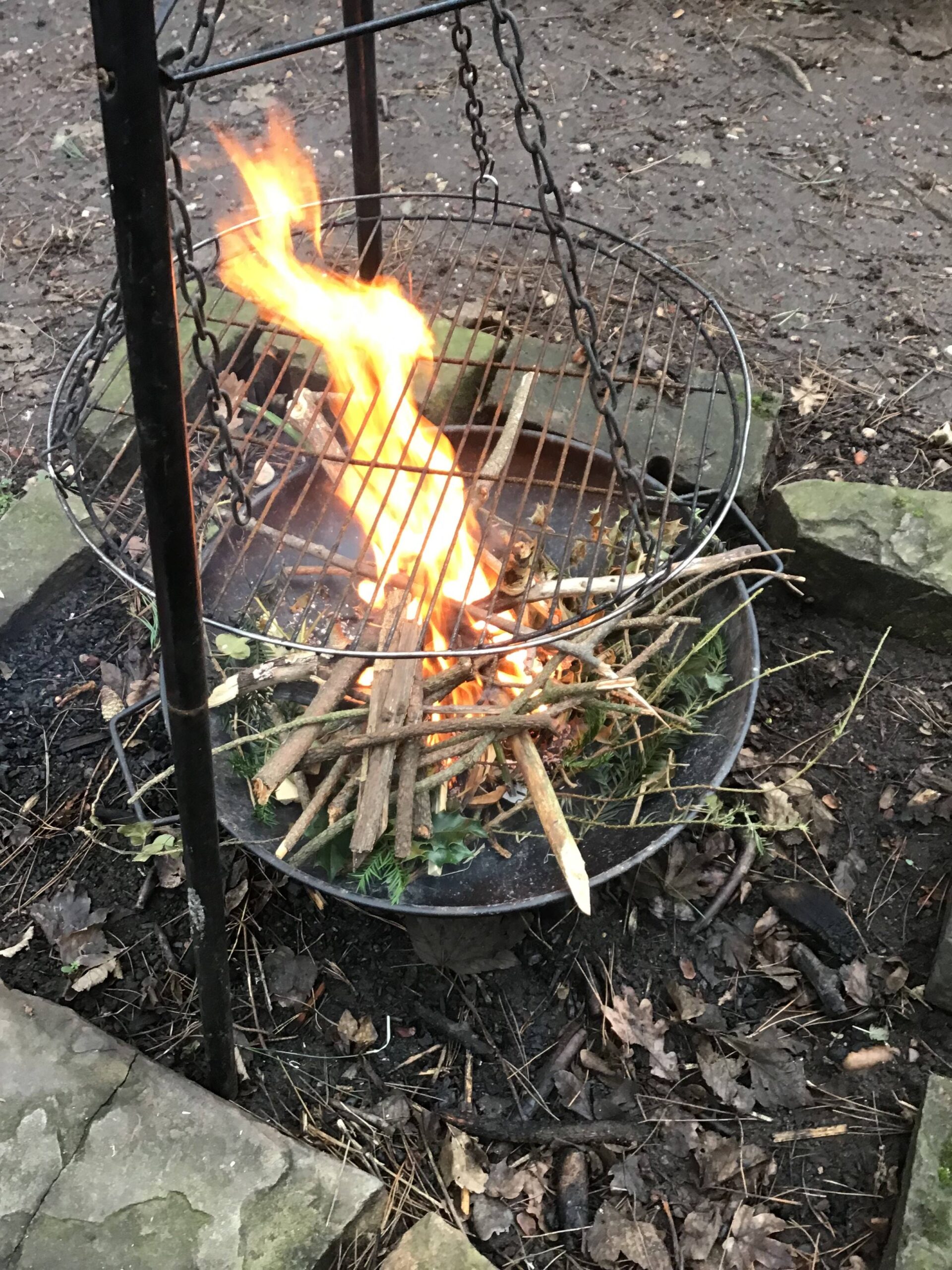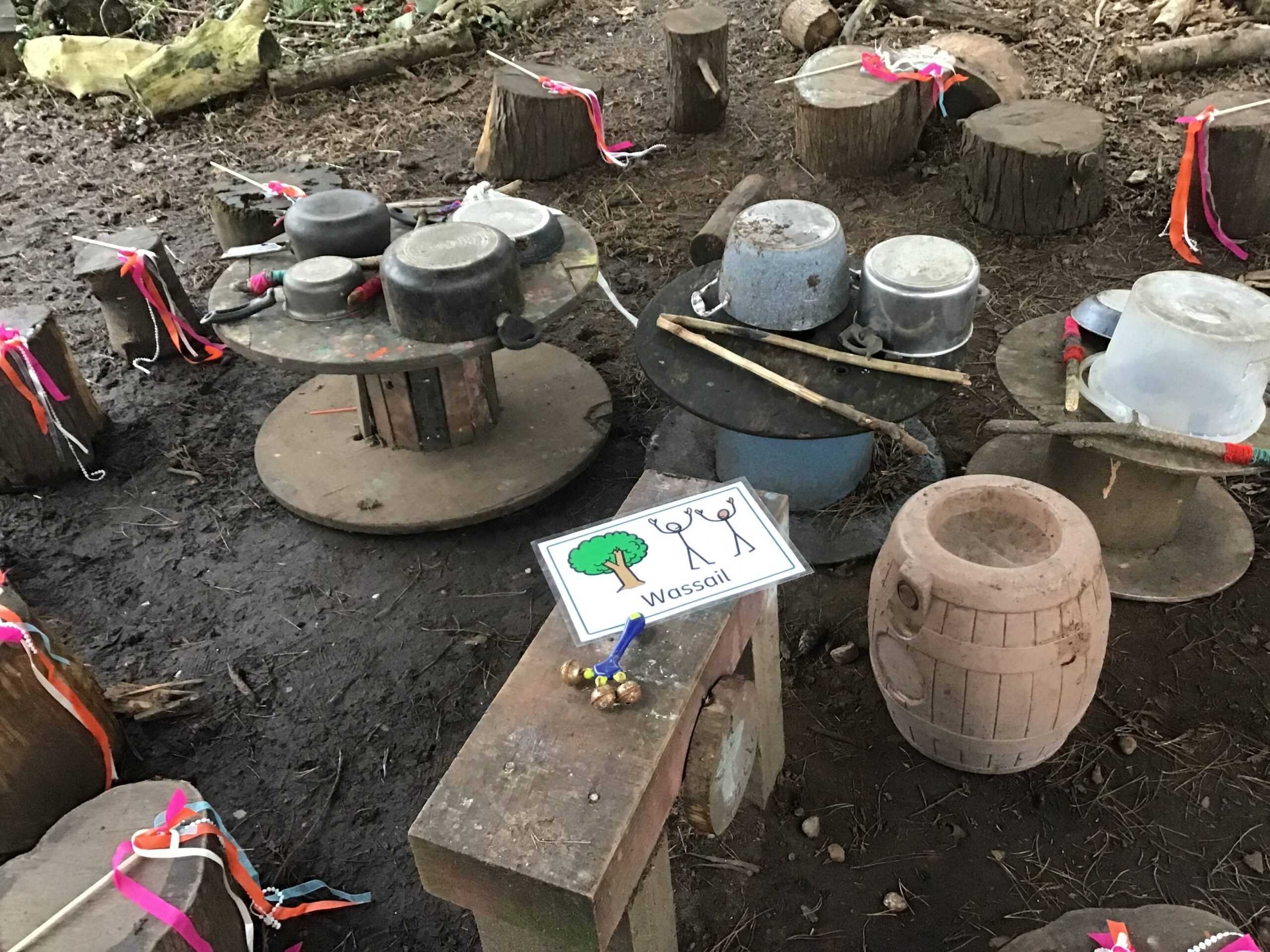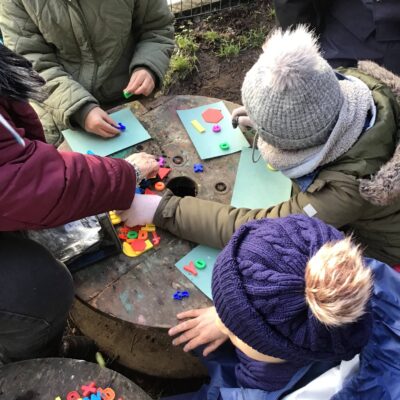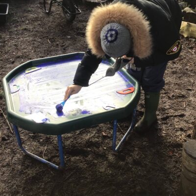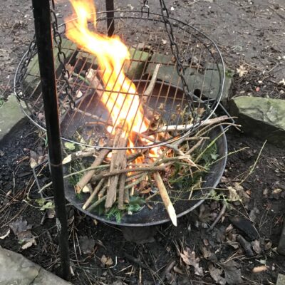 This week we also woke the Forest up by having our very own Pines ‘Wassail’ classes banged pots and pans to wake the trees and gave traditional offerings of bread. Early Years didn’t want the trees to have all the bread so toasted some on the campfire and enjoyed some hot buttered toast. Classes also used coloured paints to print new bunting to decorate the trees once they are awake. 2D made good use of the winter sun by producing brilliant solar pictures on cyantype paper while 2S enjoyed mark making in the mud while 2A decorated their own Oak tree.