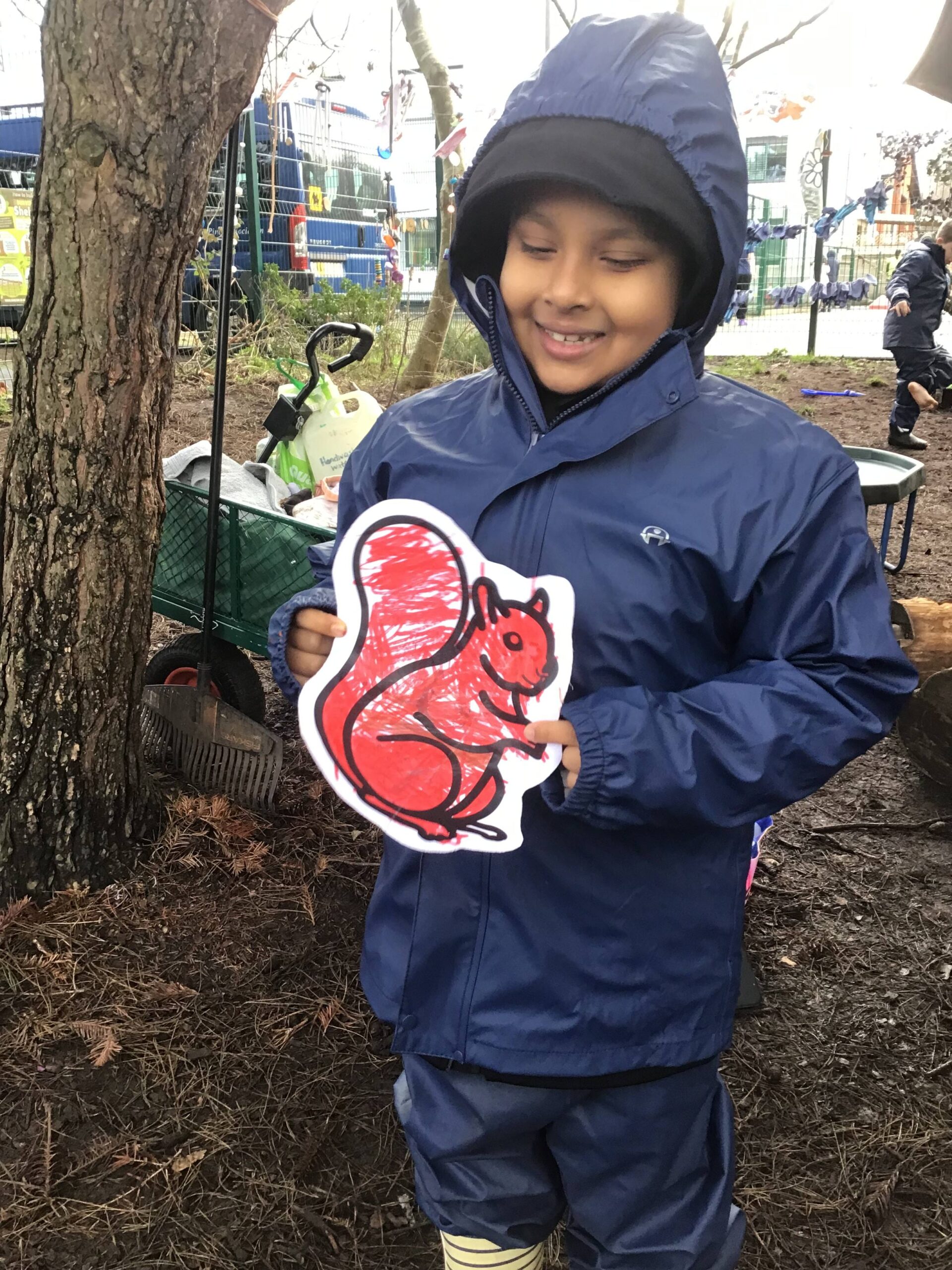 It’s been a wet two weeks in the Forest but we haven’t let that dampen our spirits. Lot’s of fun has been had by classes making rivers, Dams, splashing in puddles and enjoying and endless supply of mud. When we haven’t been soaking up the rain classes have celebrated ‘Squirrel Appreciation Day’ exploring information about Squirrels and decorating Squirrels.