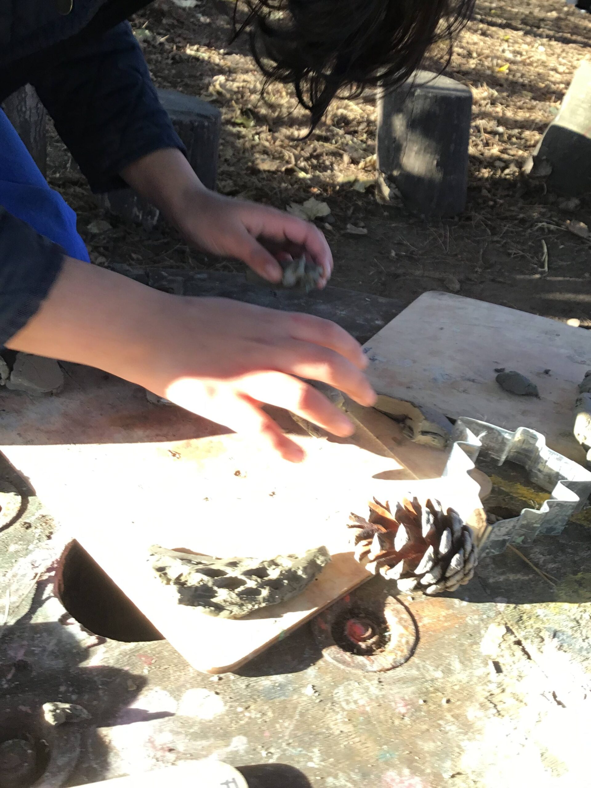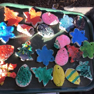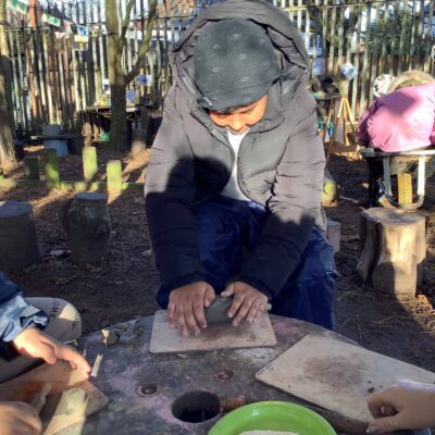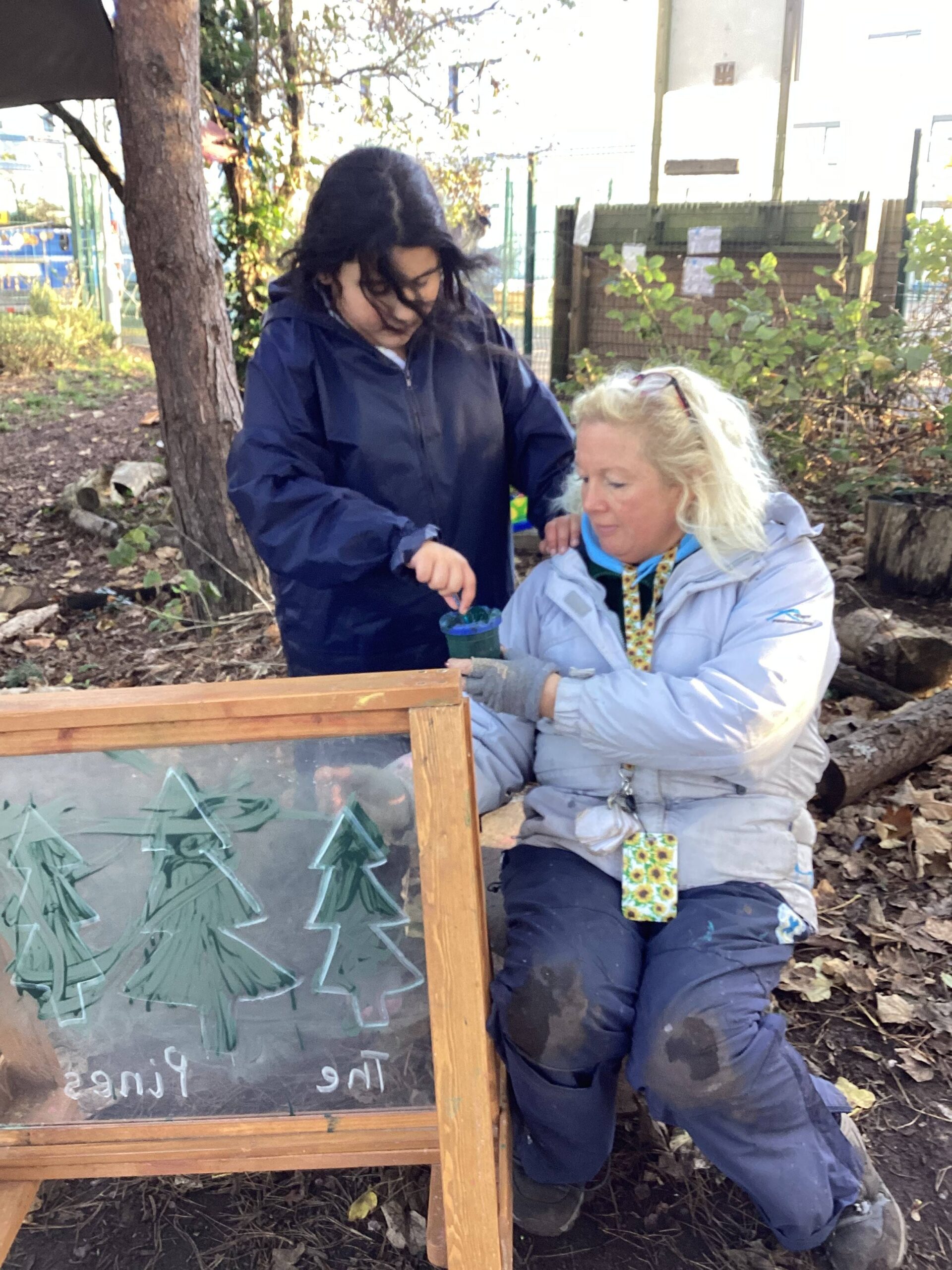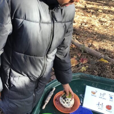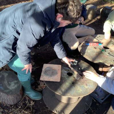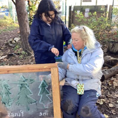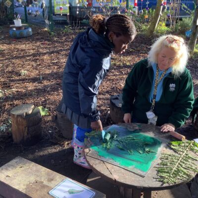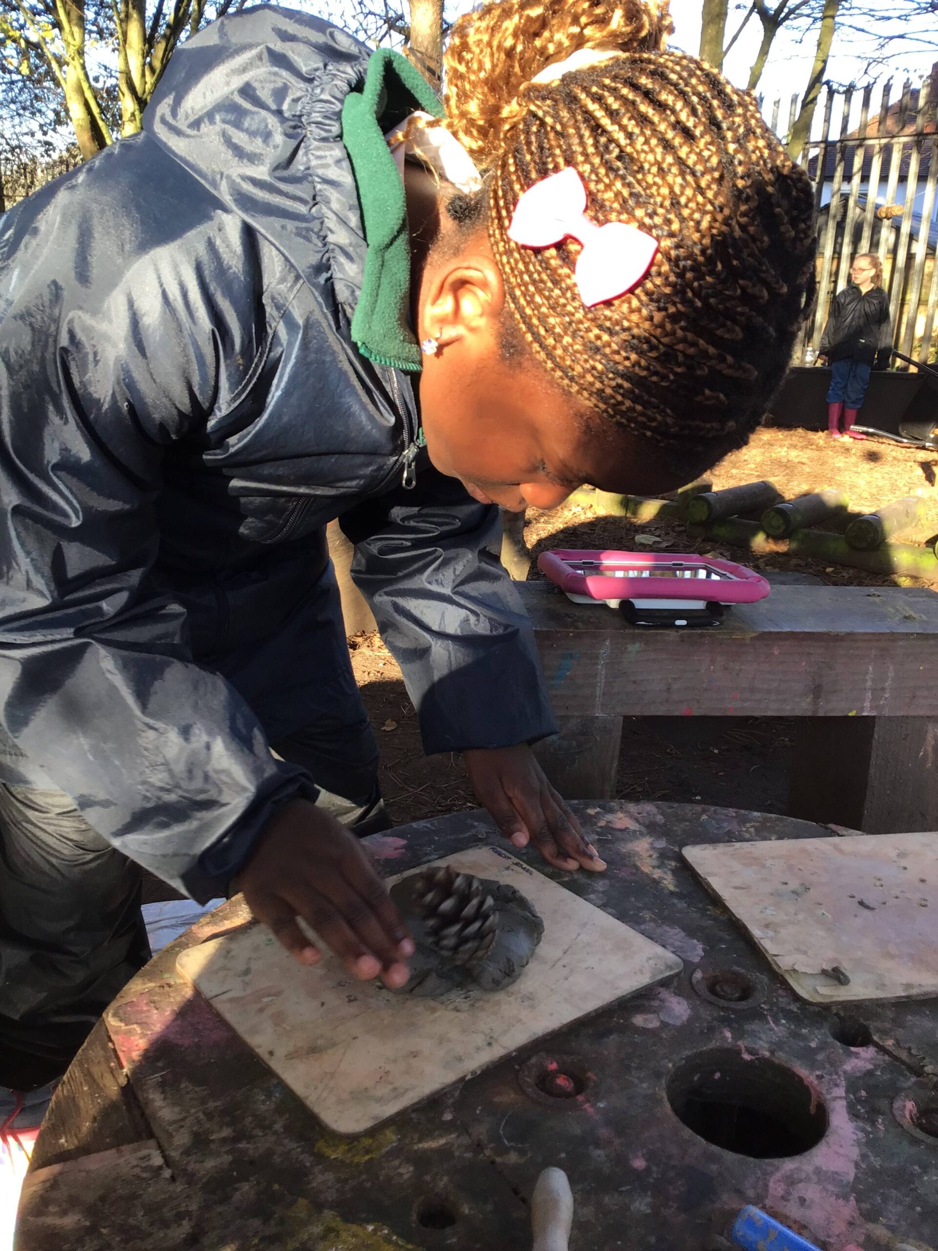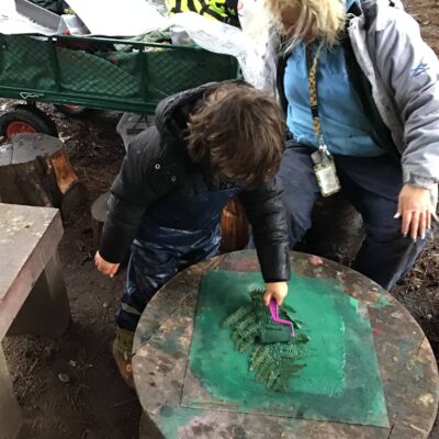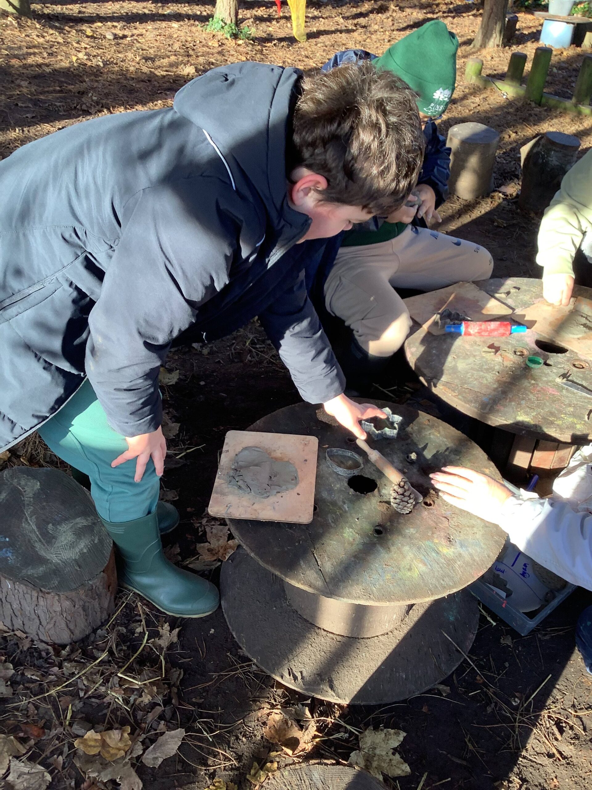 It’s starting to look very festive in the forest. We have definitely had a very busy few weeks. Early Years hunted around the forest to see what Brown Bear could see. They also enjoyed using mud to make their Bears brown. 2G and 2T carried on the mud theme by using mud to make some beautiful patterns. 2C designed their own Forest pizzas and have carefully worked with clay to produce tile decorations which we left to dry before this week using acrylic paints to finish them ready for hanging up. 1T as well as exploring all the rain water that has fallen, looked at evergreen foliage producing lovely fern prints. 2M worked well with the clay and have also produced lovely fern prints ready to be decorated and turned into Christmas trees next week.